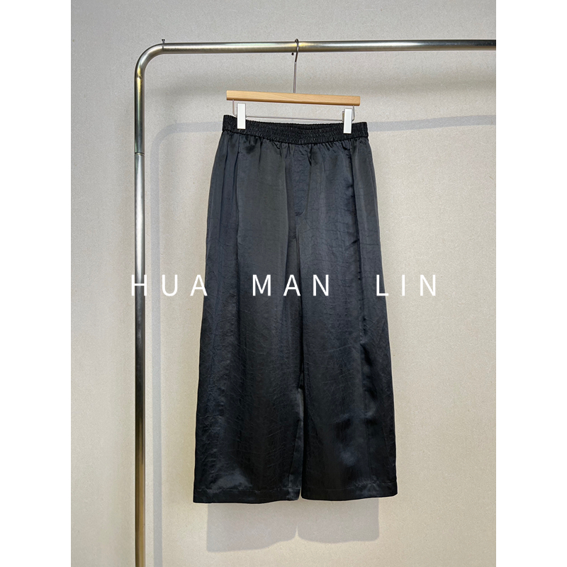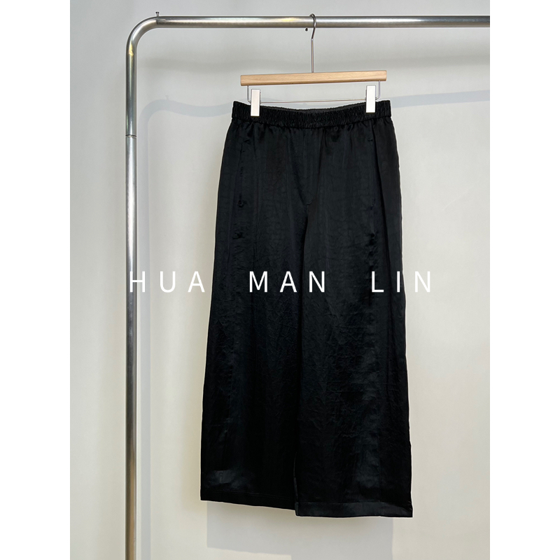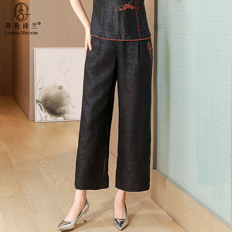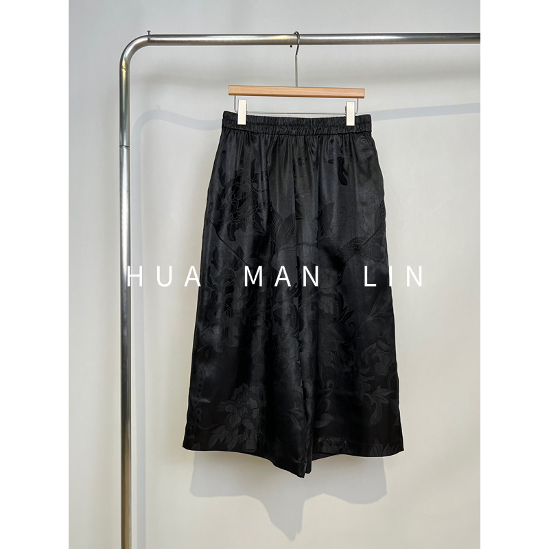 【花滿林】全松緊腰蝴蝶花大王緞香云紗桑蠶絲闊腿褲251262