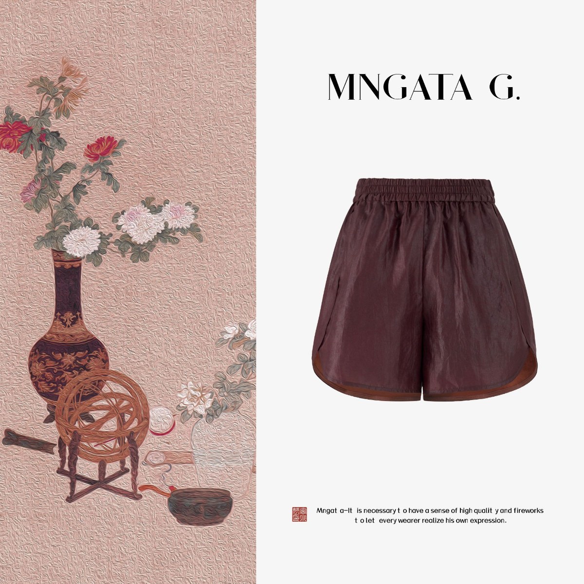 曼加塔【紅云紗·絳紅】真絲夏日新中式中國風短褲5070201