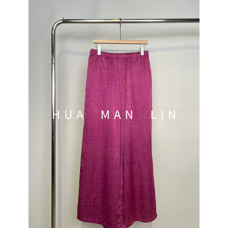 【花滿林】全松緊腰凈版35MM龜裂紋桑蠶絲雙面穿直筒褲258091