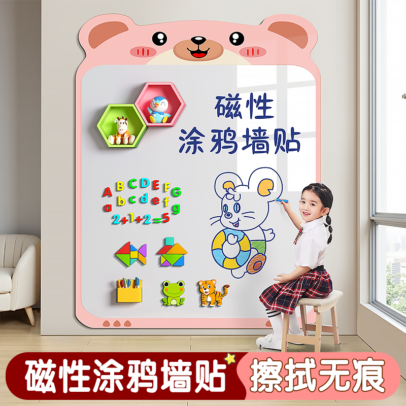 卡通造型黑板墻貼兒童家用磁性黑板貼紙可移除不傷墻磁力小黑板家庭涂鴉墻寶寶無塵粉筆畫板可擦磁性板磁性貼