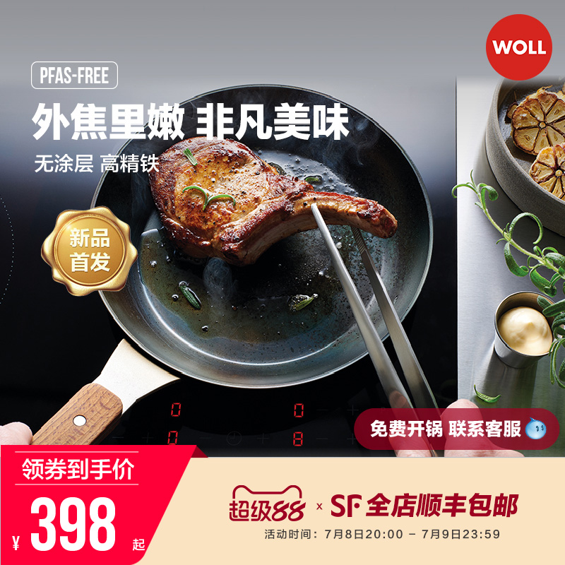 2025新品德國Woll進口碳鋼精鐵鍋無涂層物理不粘牛排鍋平底煎鍋