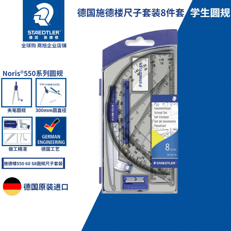 德國STAEDTLER施德樓55060S8學生專業繪圖制圖圓規工具8件套裝