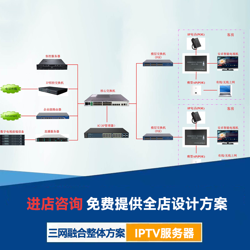 有線服務器酒店網關數字高清電視融合流媒體三網IPTV賓館智慧系統