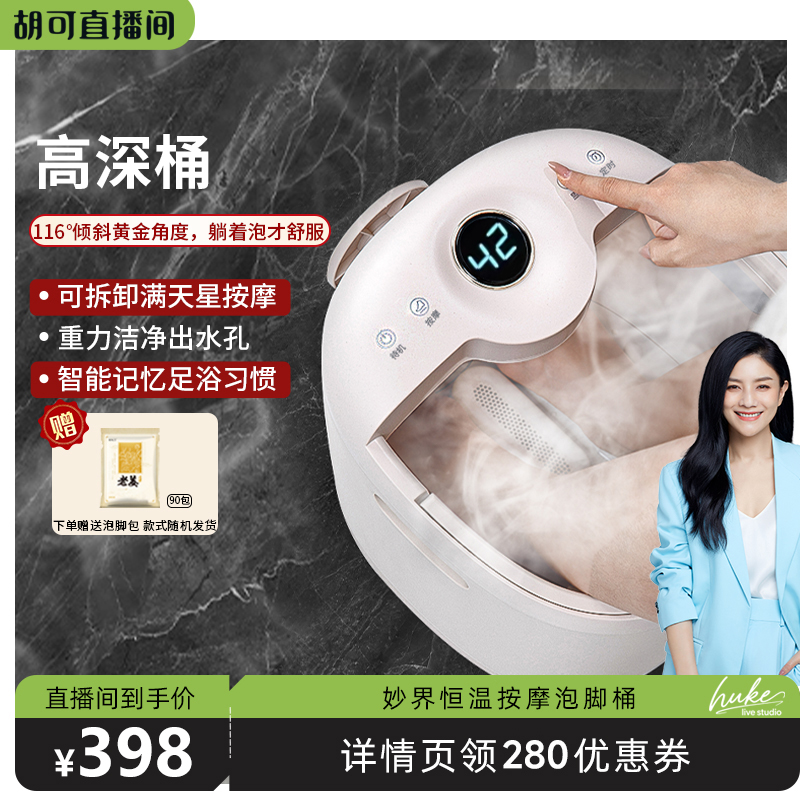 【胡可推薦】妙界泡腳桶家用加熱恒溫智能殺菌足浴器自動電動按摩