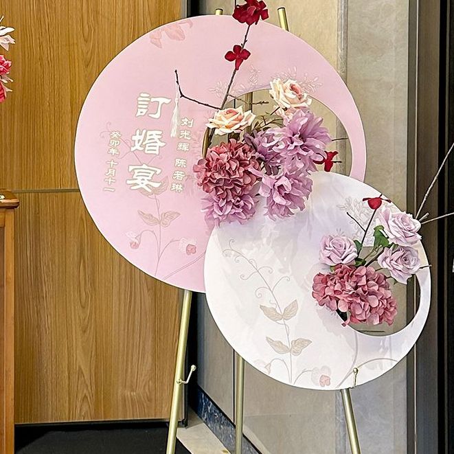 訂婚宴迎賓牌花藝結婚婚禮指示牌布置裝飾背景水牌引導牌kt板定制