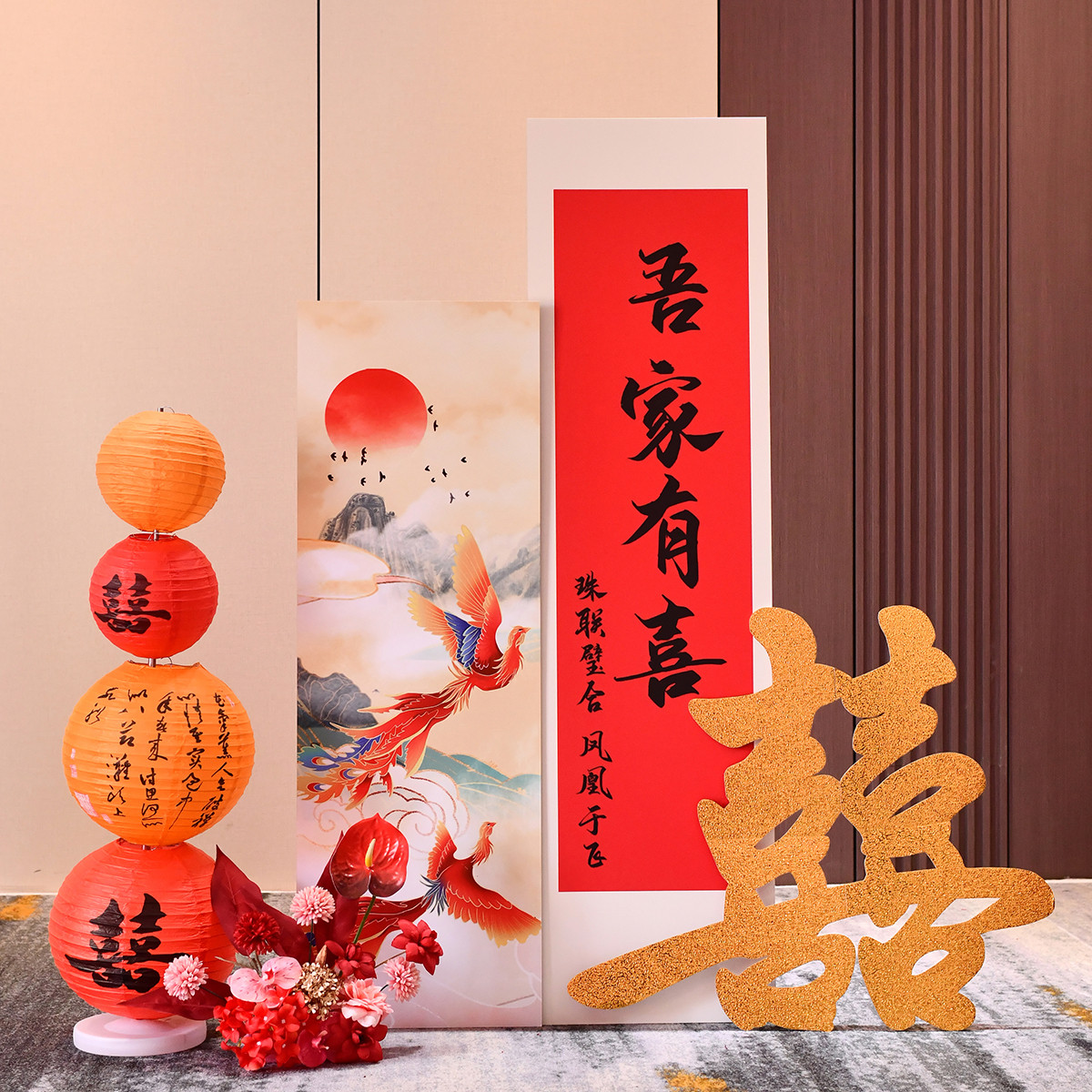 婚房布置訂婚禮套裝吾家有喜迎賓牌卷軸掛飾客廳裝飾喜字掛畫擺件