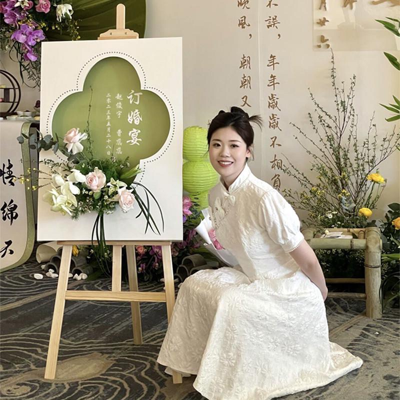 訂婚答謝宴迎賓牌門口創意擺件定婚背景布置裝飾高級感kt板指示牌