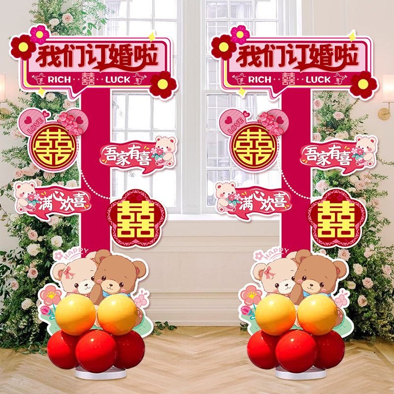 訂婚迎賓牌場景布置門口卡通立牌kt板指示牌訂婚宴酒店裝飾引路牌