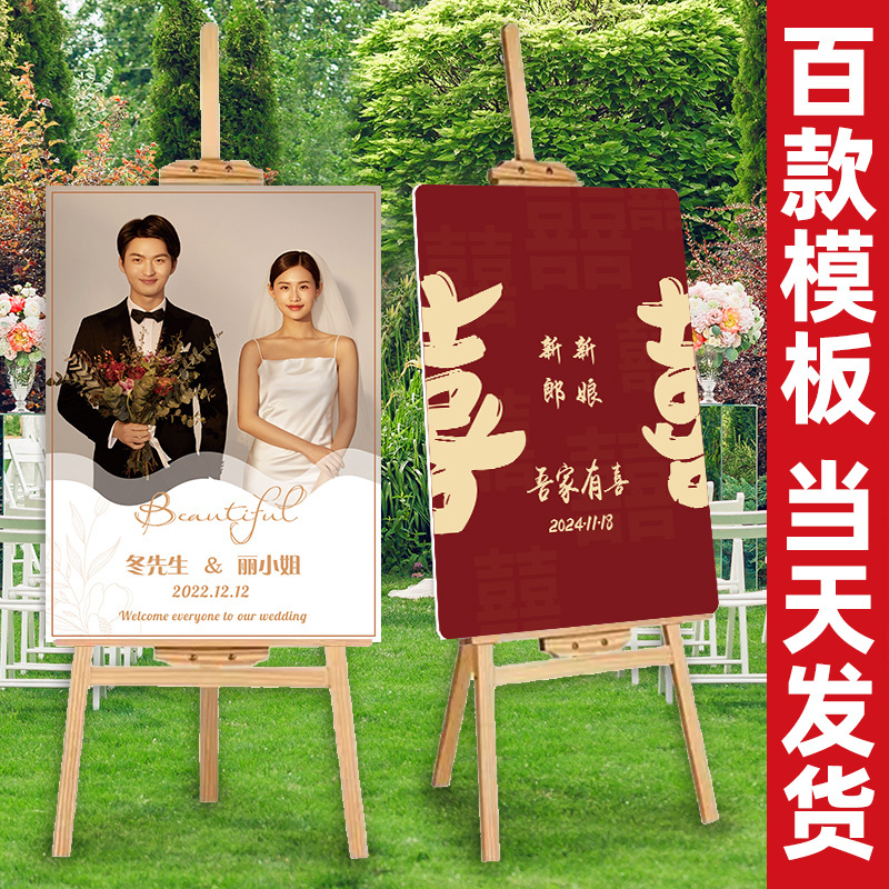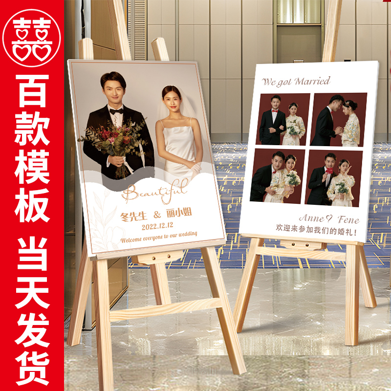 婚紗照展示架婚禮迎賓牌結婚海報定制出閣宴訂婚宴迎賓區布置門口