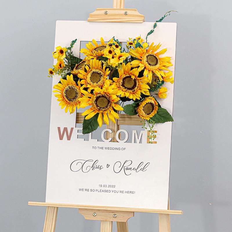 向日葵主題木質鏤空歡迎牌訂婚宴迎賓牌婚禮指引草坪水牌嘉賓定制
