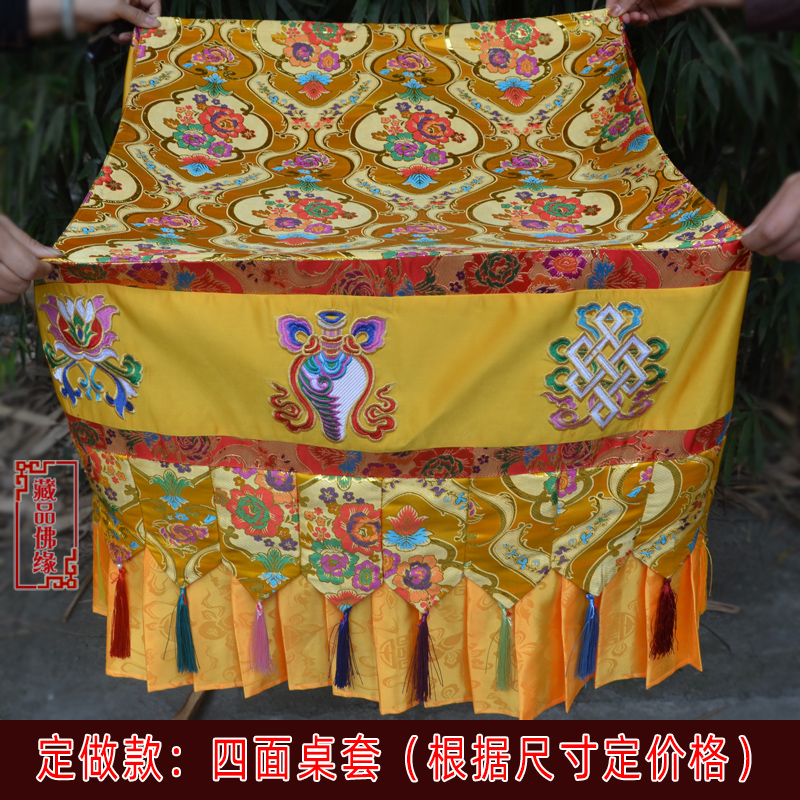 藏式佛堂供桌裝飾繡大八吉祥彩色黃裙邊四面佛桌套供桌罩定做款