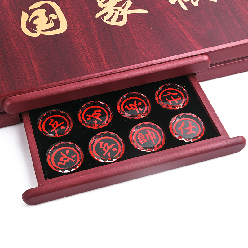 水晶棋子中國象棋套裝木制棋盤抽屜孩子玩具送男朋友長輩生日禮物