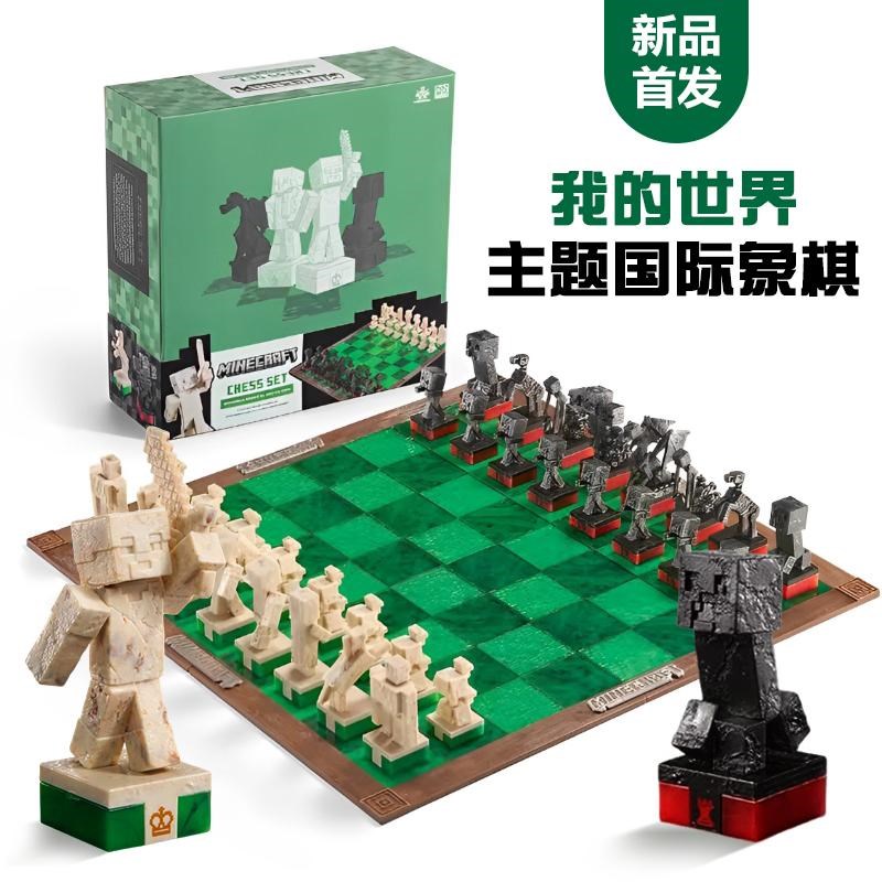 我的世界主題國際象棋mc游戲周邊史蒂夫苦力怕人物公仔模型玩具