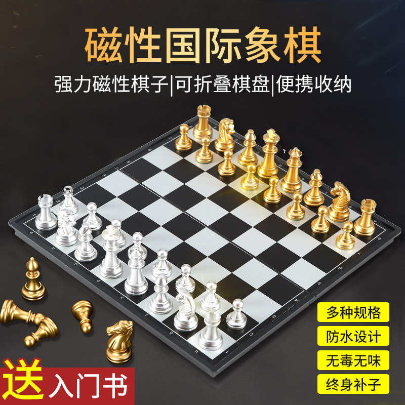 國際象棋便攜式兒童磁性小折疊棋盤套裝學生比賽專用西洋棋子大號