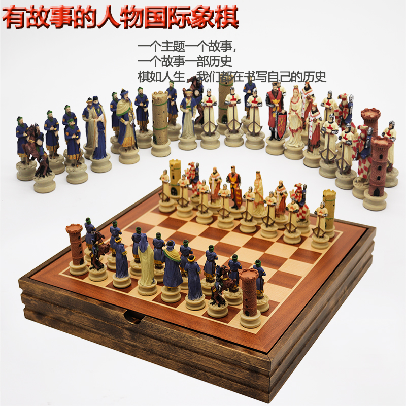 國際象棋立體人物送爸爸岳父兒童送朋友家居商務擺件比賽實木象棋
