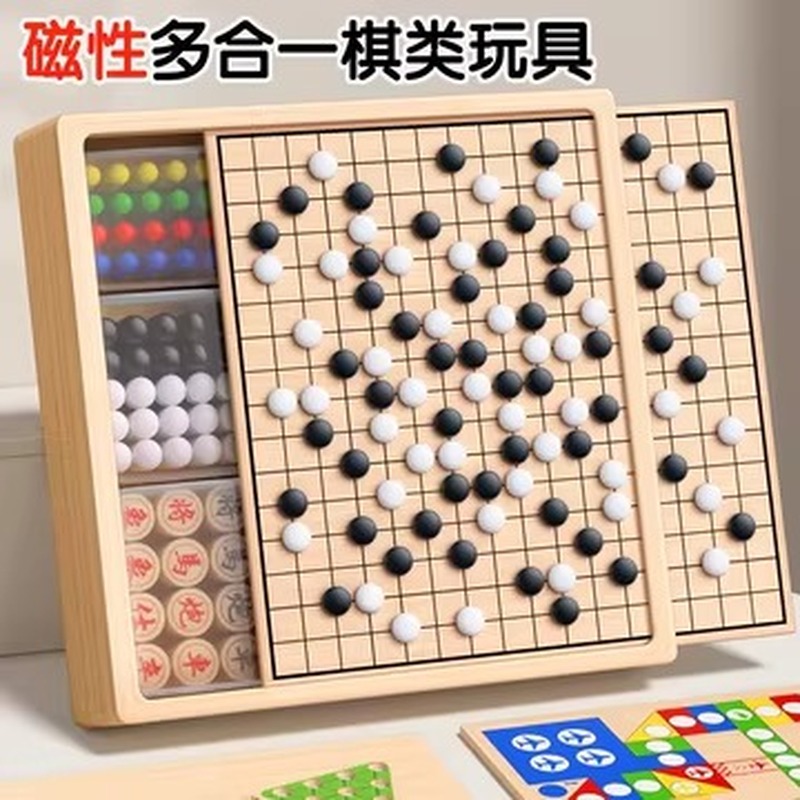 磁吸五子棋飛行棋兒童版玩具跳棋象棋類多功能棋盤合一帶磁性套裝