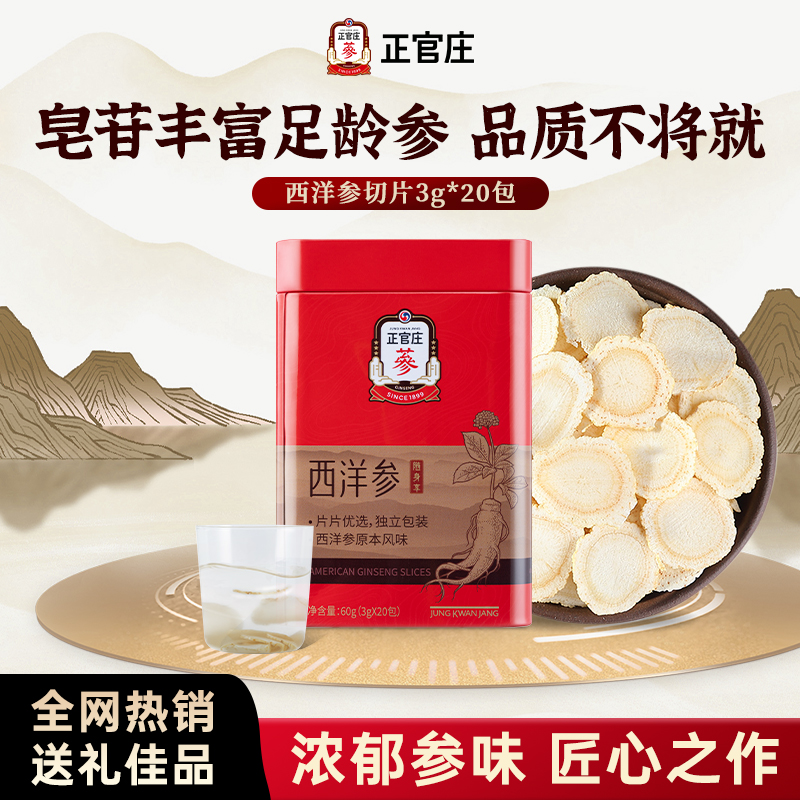 正官莊官方旗艦店西洋參片60g禮盒花旗參整根切片獨立包裝正品