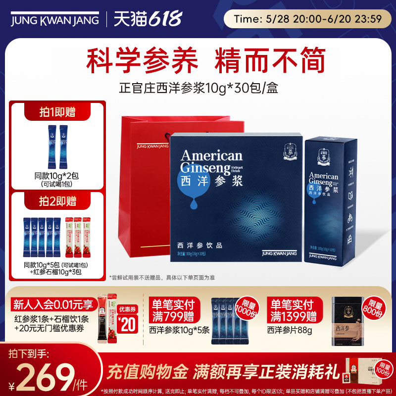 【西洋參】正官莊西洋參濃縮液提取漿飲品送人禮盒口服非含片