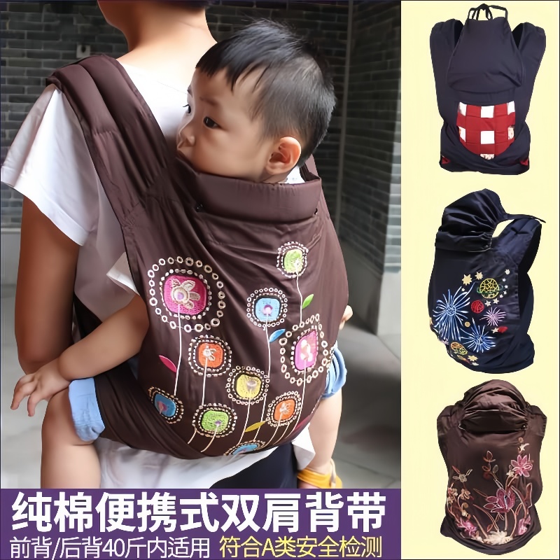 嬰兒寶寶前抱后背式簡易刺繡老式傳統大孩背帶背巾背袋抱娃神器