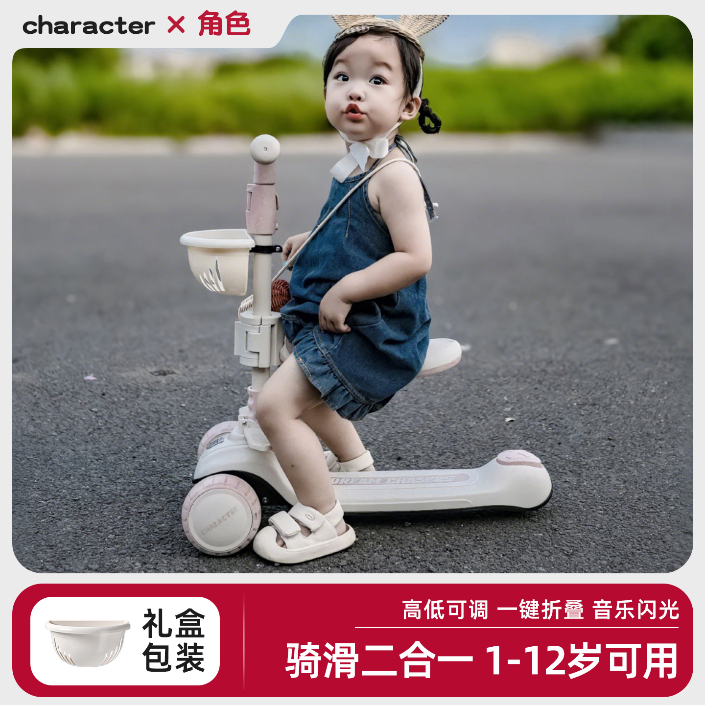 角色2025新款兒童滑板車1-3到6到12歲三合一可坐可騎防側翻踏板車