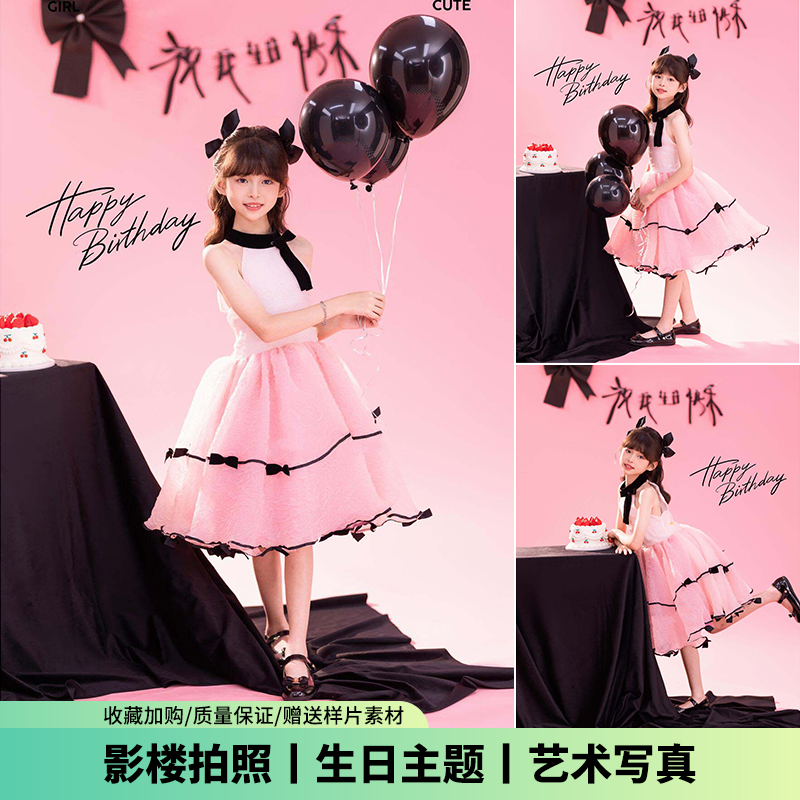 兒童攝影服裝粉色芭比女孩公主生日蛋糕裙主題影樓拍照寫真藝術照