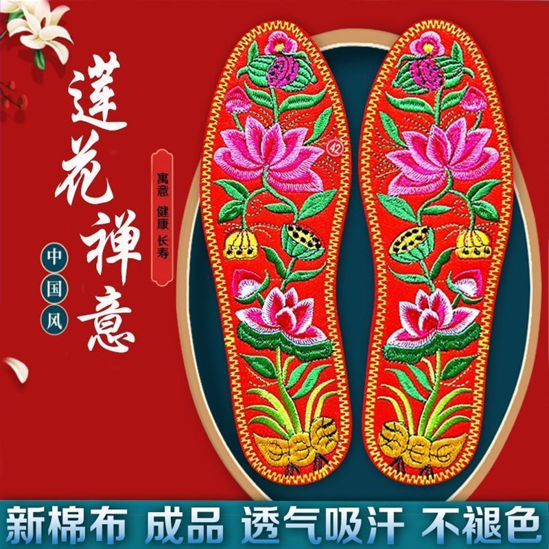 棉布十層蓮花繡花鞋墊成品繡好的加厚新婚本命Q年男女刺繡透氣吸