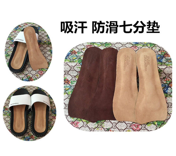 春季女豬皮汗腳半碼墊涼鞋防滑吸汗透氣可貼超薄七分真皮黑白色墊