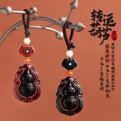 紫檀車鑰匙掛件葫蘆黑檀木福祿平安汽車鑰匙繩掛件鑰匙扣鎖鑰匙圈