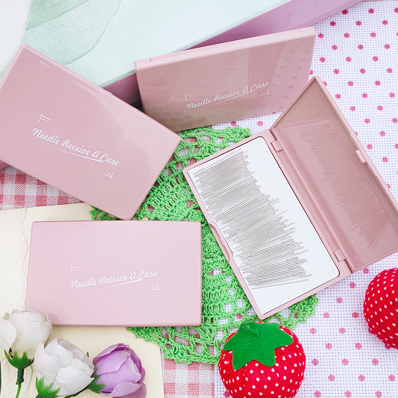 十字繡小工具粉色吸針盒子粉色磁片磁性針線盒收納繡針吸針盒子