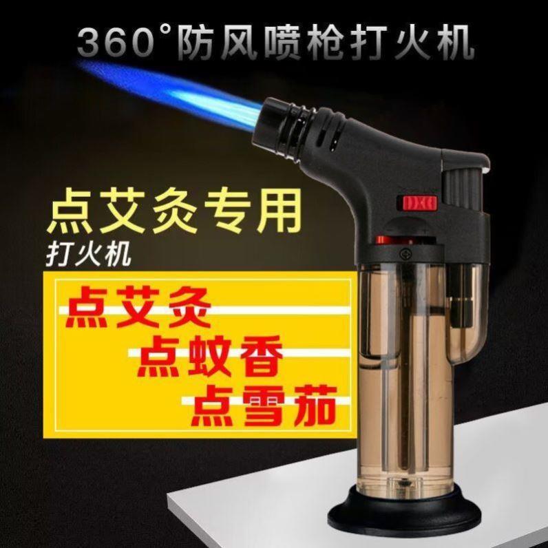 新疆包郵點艾灸專用打火機防風直沖艾柱雪茄點火神器家用充氣高溫