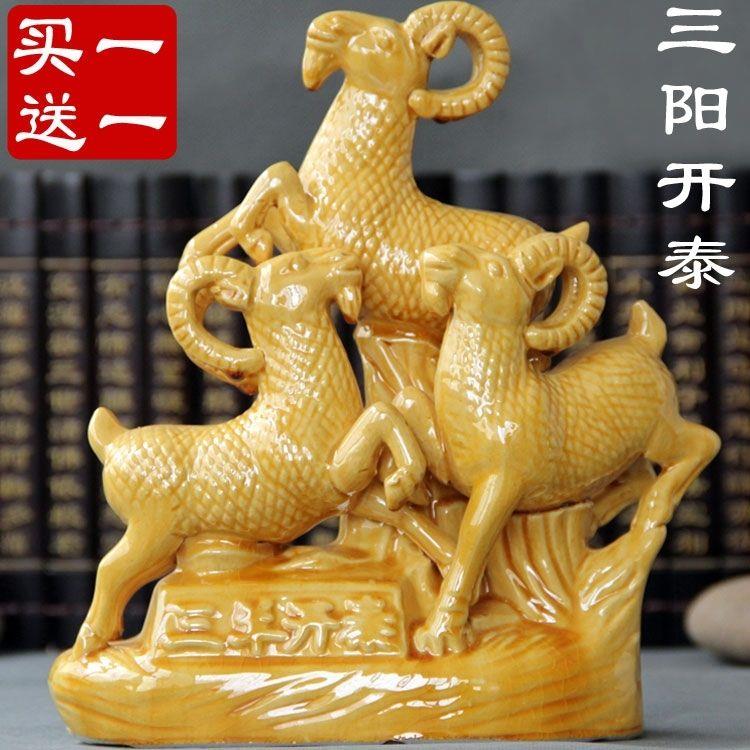 現貨速發唐三彩羊陶瓷三羊開泰桌面擺件工藝品如意羊禮品家居裝飾