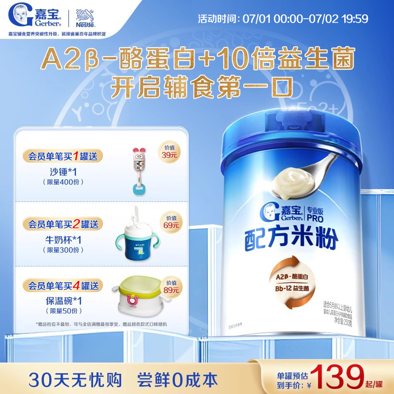 【10倍益生菌】嘉寶配方米粉A2β-酪蛋白高鐵米粉嬰兒好吸收
