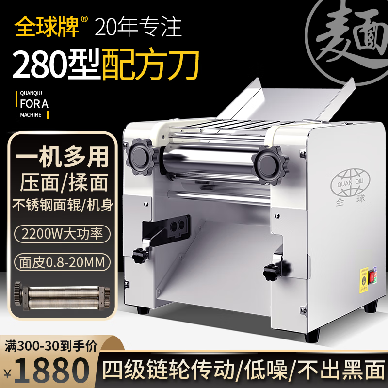 全球(QUNQIU)壓面機商用揉面一體機臺式多功能刀削面臊子面機全自