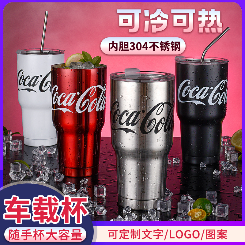 304不銹鋼雙層冰霸杯大容量車載杯創意水杯咖啡隨手杯馬克杯帶蓋