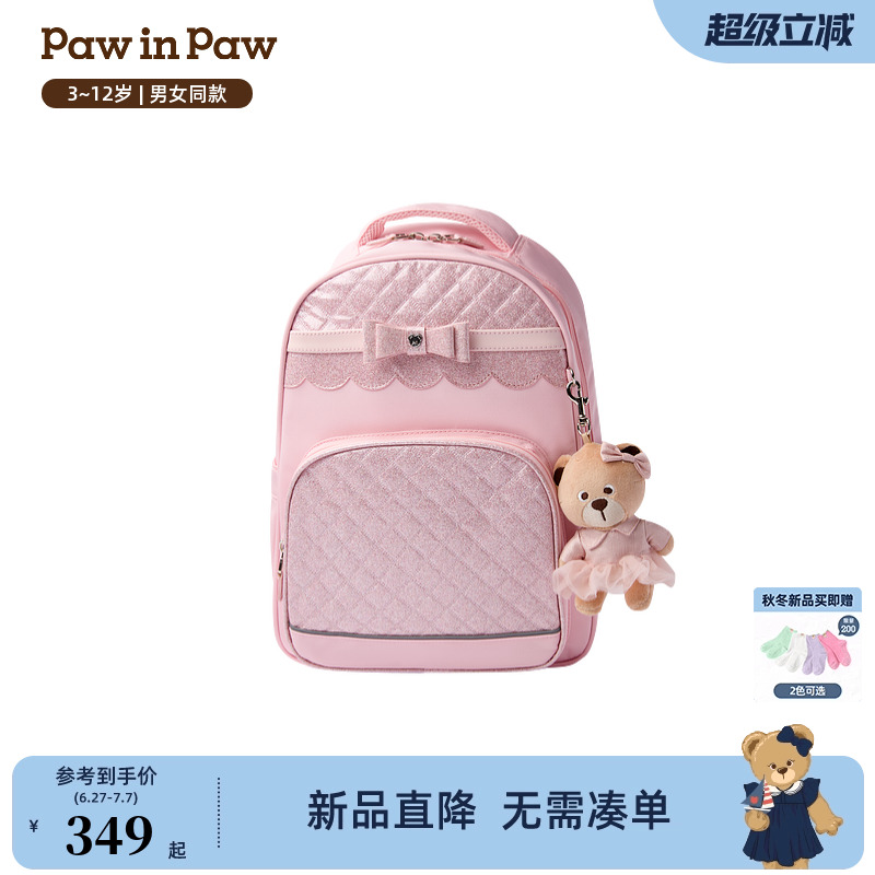 PawinPaw卡通小熊童裝25年秋冬新款女童減負甜美雙肩包書包