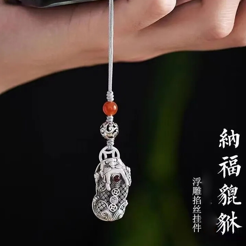 925泰銀復古福字銅錢貔貅手機鏈招財福祿吉祥手機掛繩掛件掛飾