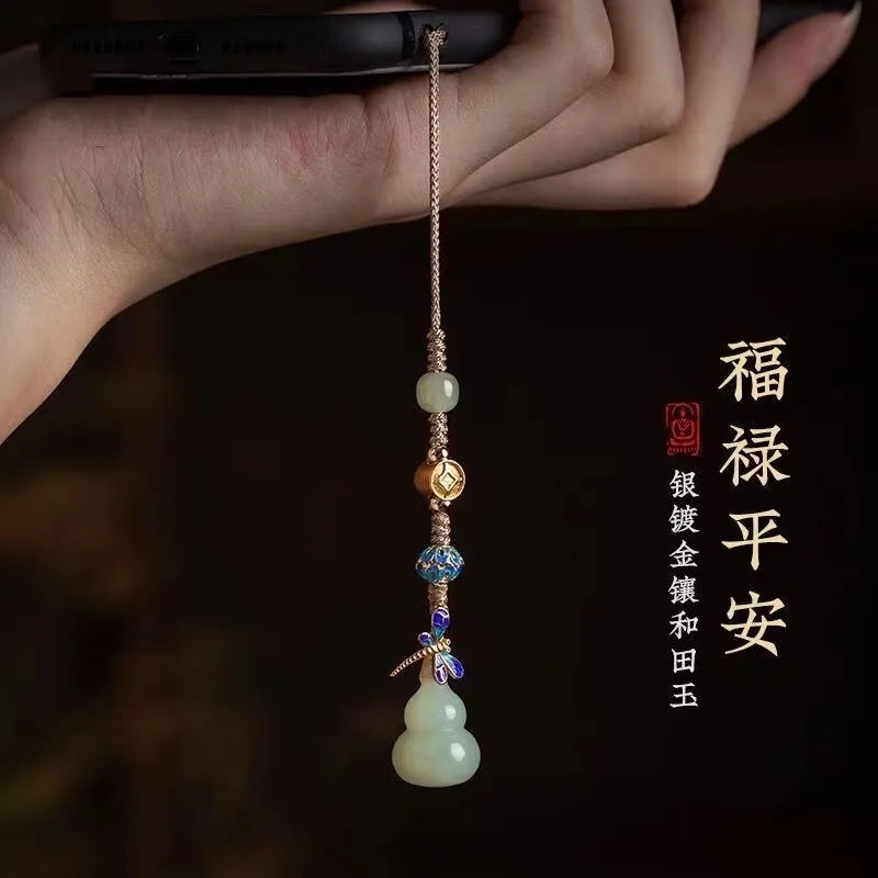 天然和田玉福祿葫蘆手機鏈中式吉祥招財高檔手機掛繩掛件掛飾禮物