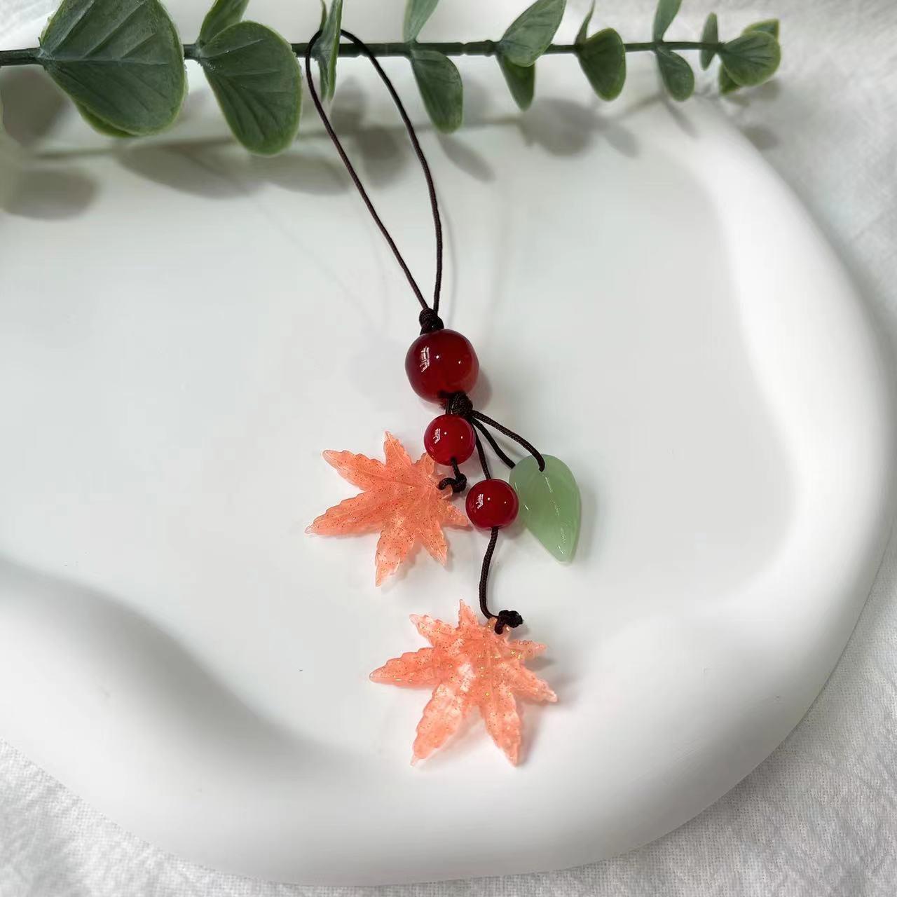 楓葉紅手機連新款掛繩鑰匙扣 一丈紅樹葉綠色掛件配飾送閨蜜楓葉