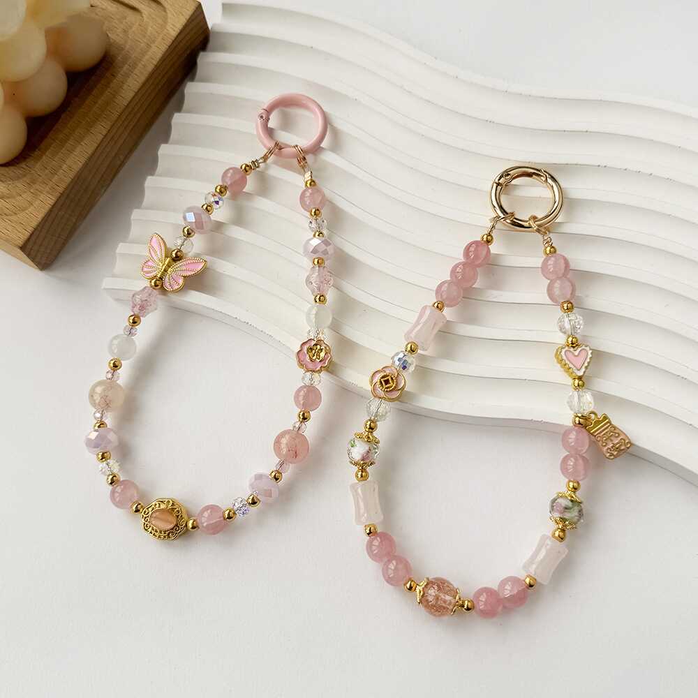 新中式國風合金平安符成品女鏈甜美天然石蝴蝶水晶鑰匙掛飾