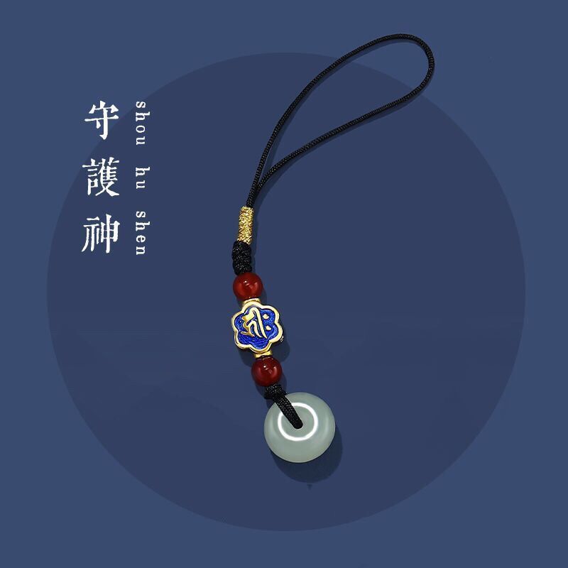 和田玉平安扣手機掛件女精致鑰匙鏈繩純銀十二生