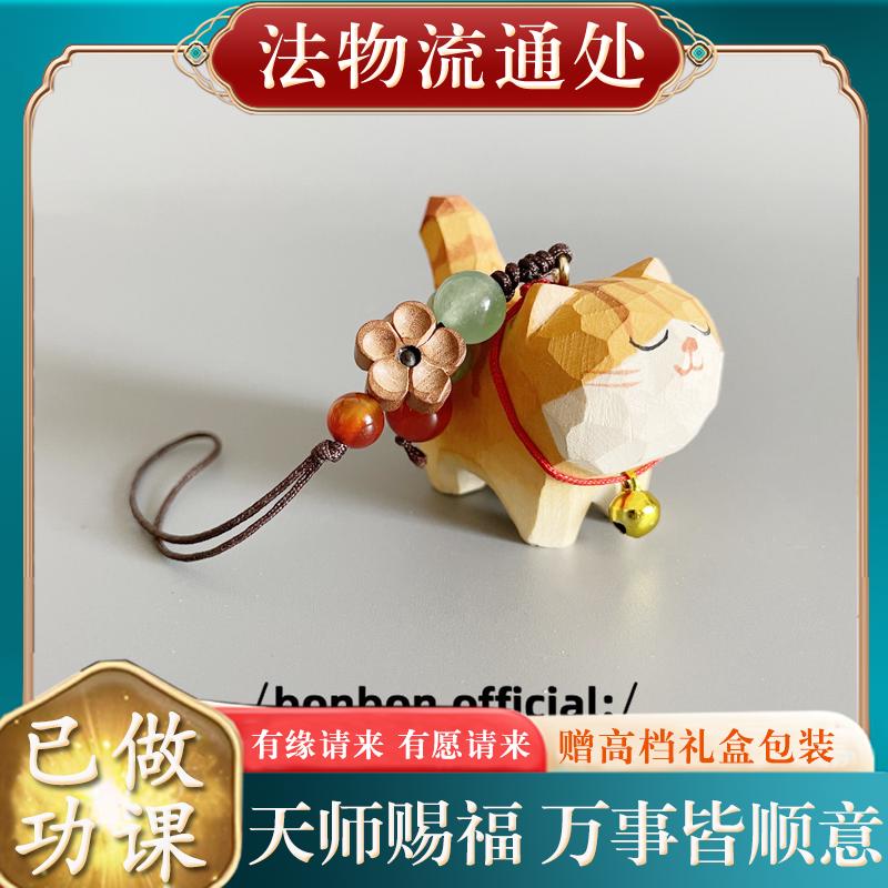 【已過香】轉開好轉運護身符保平安過光手工木雕貓咪手機鏈平安桃
