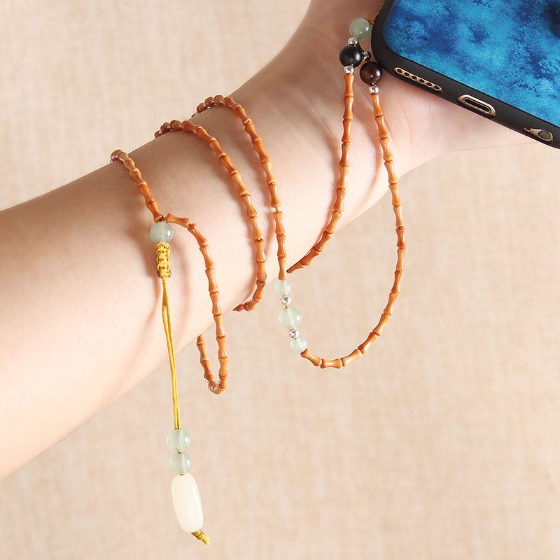 中國風橄欖核竹節項鏈繩手機鏈女掛脖玉石吊墜繩子手機殼繩可拆卸