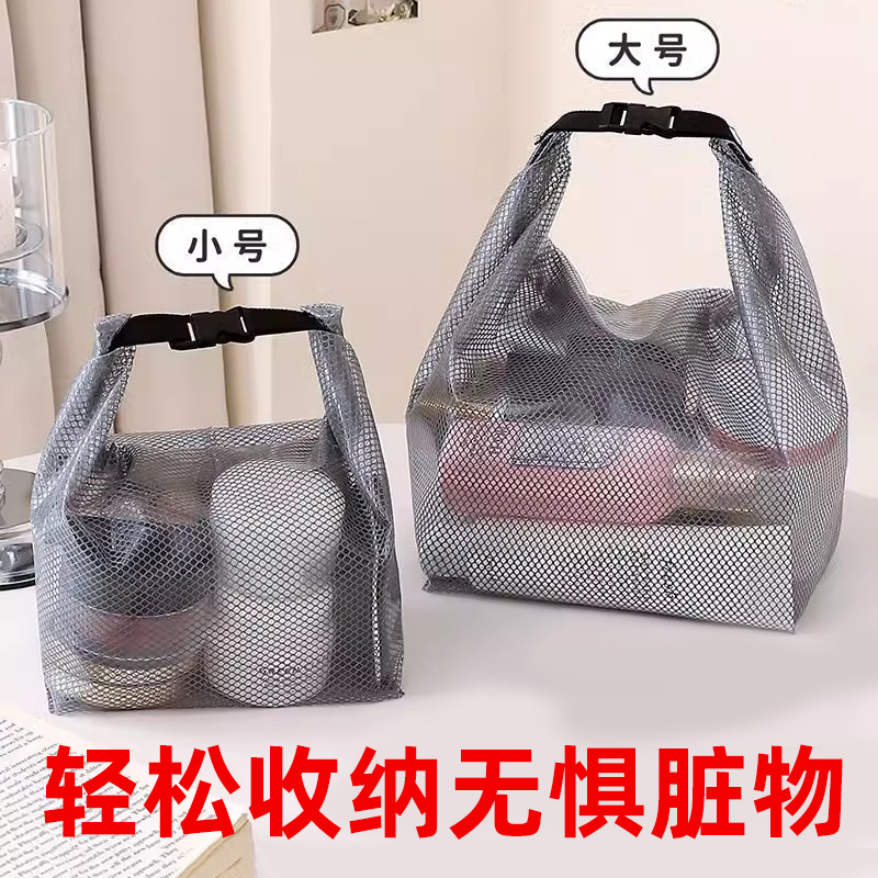 網格便攜洗漱包出差旅行大容量網眼洗浴包多巴胺手提收納袋游泳包