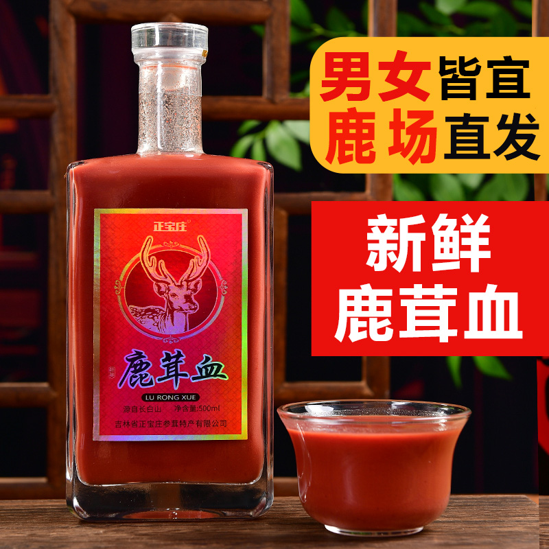 吉林正品梅花純鹿茸血酒500ml男滋補養生新鮮鹿血保鮮東北特產