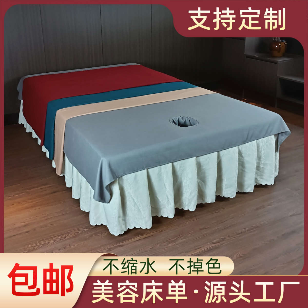 純色美容院床單定制單件簡約帶洞美體養生會所用泰式按摩床罩加厚