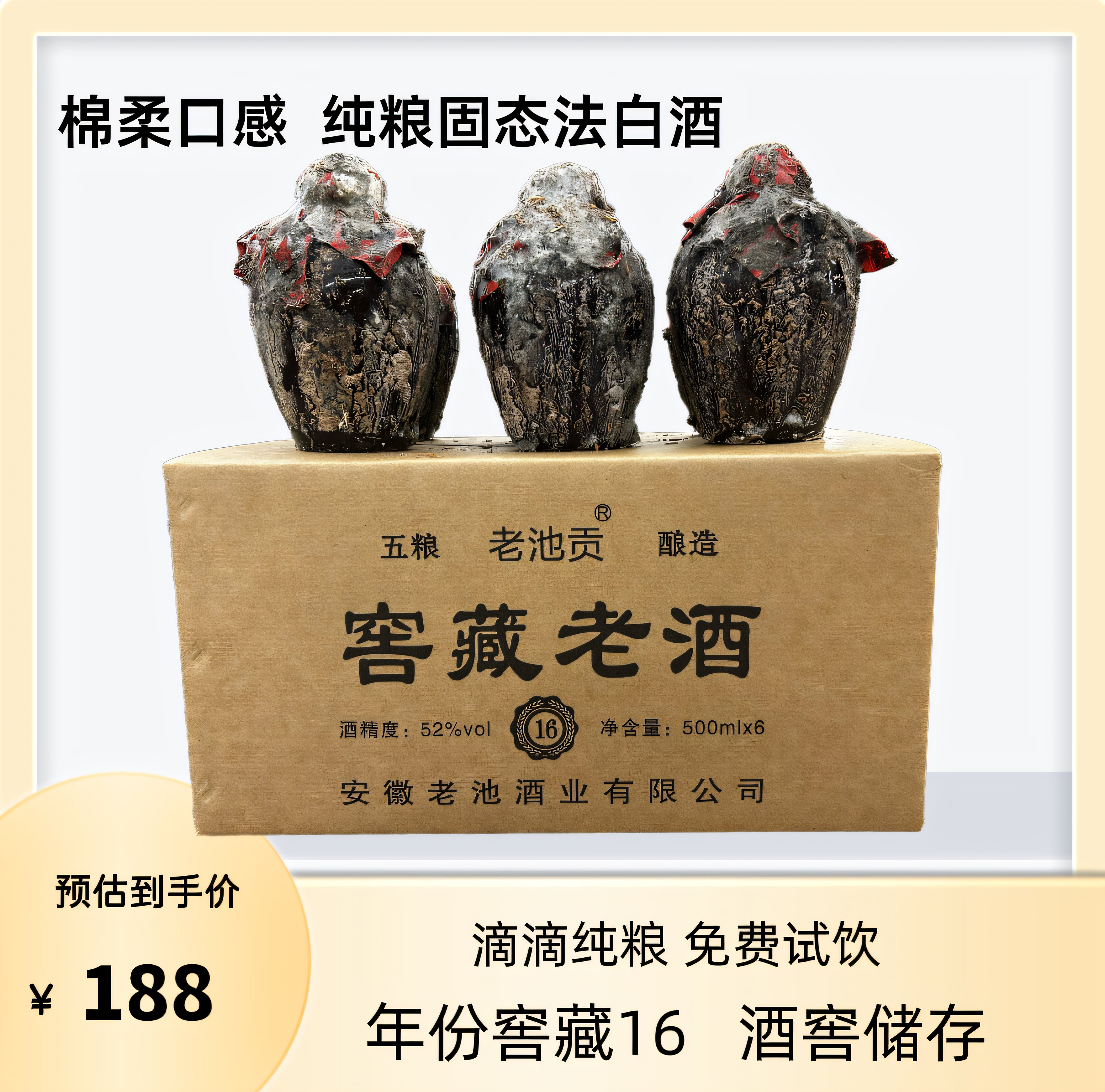窖藏老酒純糧食酒 老池貢16 52度一箱6瓶每瓶500毫升酒廠直銷