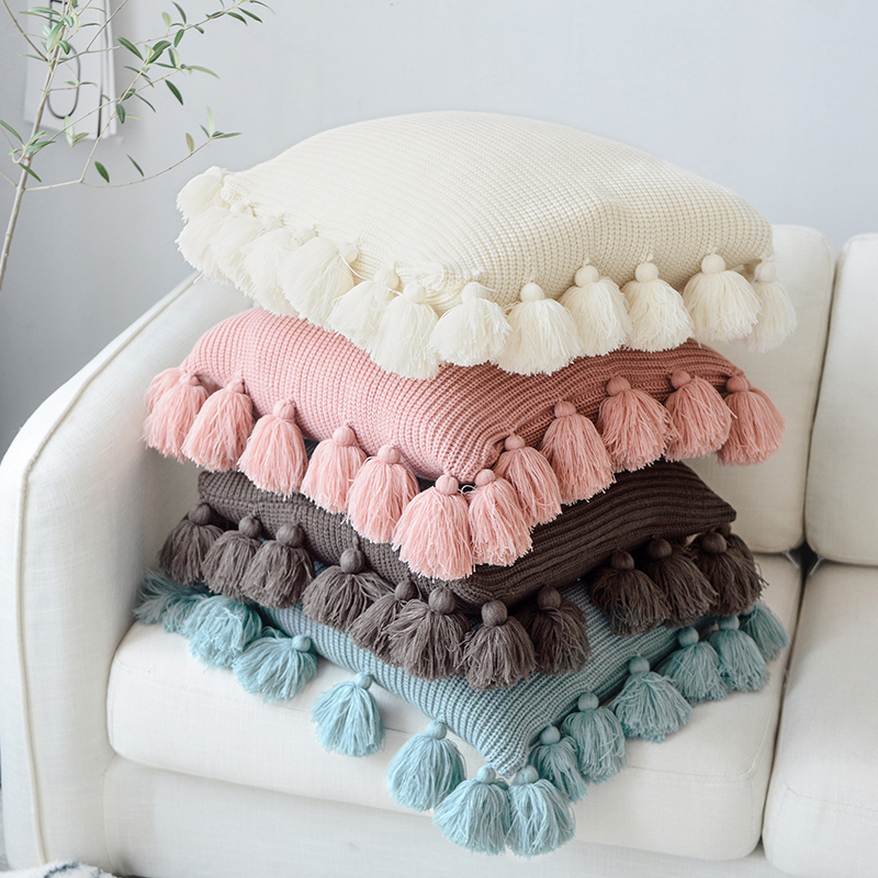 針織靠墊流蘇毛線抱枕枕套辦公室沙發可愛靠N背墊現代簡約睡覺靠