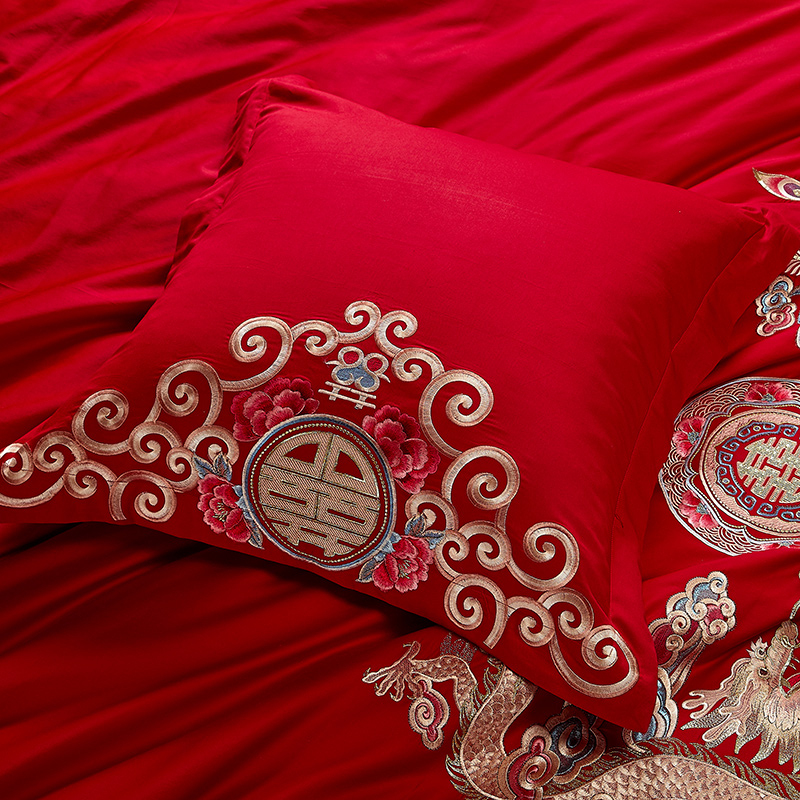 婚慶大紅喜慶純棉靠墊枕套抱枕一對60*60CM結婚房陪嫁.禮床上用品