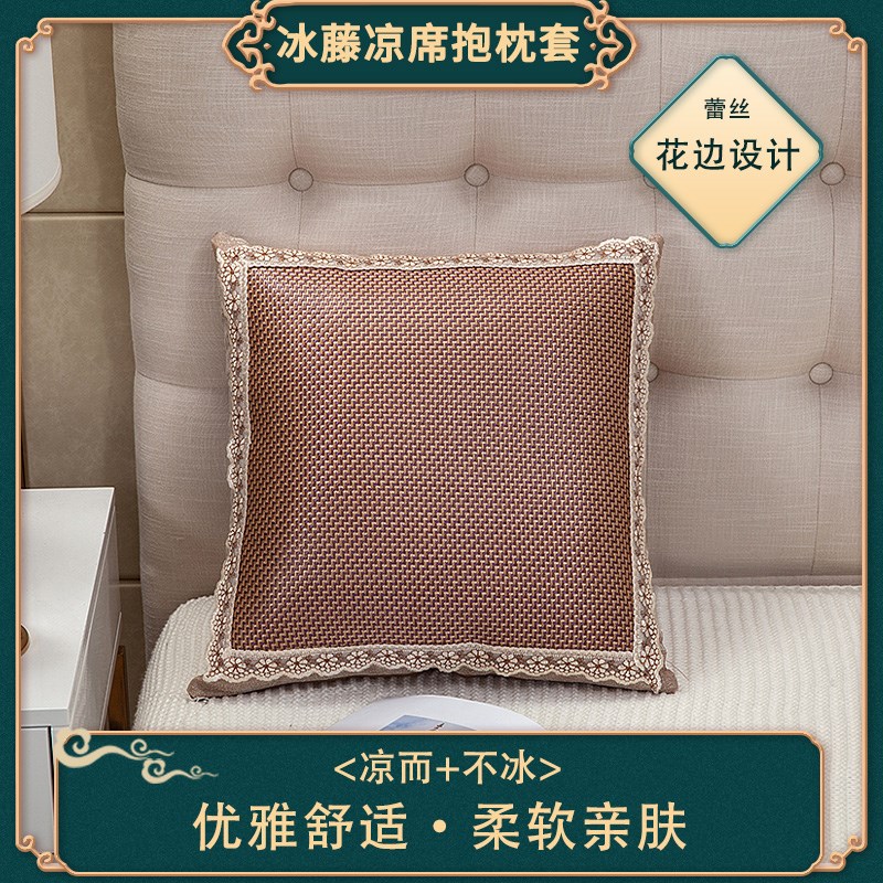 夏天冰絨雙面涼席抱枕套 夏季沙發涼席靠墊套 藤席靠背墊套含芯