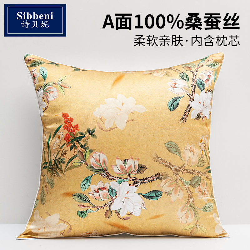 詩貝妮單面真絲抱枕套沙發辦公室腰枕靠墊午睡靠枕套床上靠墊含芯